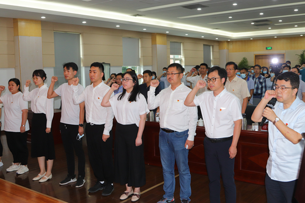 大會(huì)在雄壯的國(guó)歌聲中開幕。首先,在黨委書記彭輝同志帶領(lǐng)下,8名預(yù)備黨員面向黨旗進(jìn)行了莊嚴(yán)的入黨宣誓儀式,其他黨員同志們重溫了入黨誓詞。