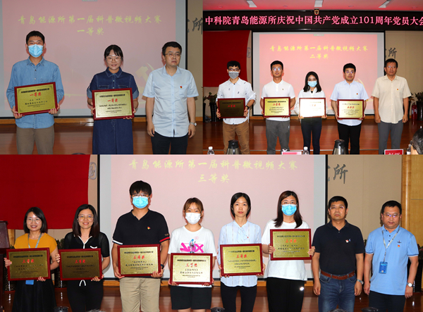 會(huì)上黨委委員為研究所“講身邊人、說(shuō)身邊事”主題演講比賽獲獎(jiǎng)人員和研究所第一屆科普微視頻大賽獲獎(jiǎng)團(tuán)隊(duì)代表頒發(fā)了榮譽(yù)證書和獎(jiǎng)牌。
