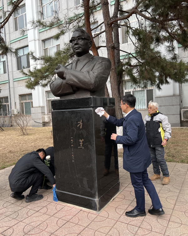擦拭李薰先生塑像