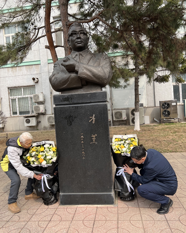 紀念活動中,徐巖帶領(lǐng)青年職工擦拭了李薰先生的塑像,徐巖和王崇琳為李薰先生塑像敬獻了花籃,青年科研人員和職能部門代表向塑像敬獻了菊花,大家一起向李薰先生塑像三鞠躬表達對李薰先生的懷念和崇敬。