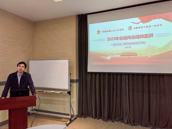 隨后,全國人大代表孫東明同志作“2023年全國兩會(huì)精神宣講”主題報(bào)告。他介紹了2023年全國人民代表大會(huì)的概況、習(xí)近平總書記在大會(huì)期間的重要講話精神、各項(xiàng)工作報(bào)告和議程的主要精神、代表團(tuán)活動(dòng)情況及個(gè)人履職情況。孫東明表示,在參會(huì)過程中聆聽了習(xí)近平總書記的重要講話,非常振奮人心,觸動(dòng)很大,強(qiáng)烈感受到黨中央對(duì)科技創(chuàng)新的高度重視,全國兩會(huì)后,自己通過會(huì)議座談、新聞媒體等積極宣傳全國“兩會(huì)”精神。孫東明指出,作為科研一線的全國人大代表,是黨和國家給了自己榮譽(yù)和責(zé)任,將一如既往認(rèn)真履職盡責(zé),在推動(dòng)科技自立自強(qiáng),推動(dòng)黨中央重大決策部署貫徹落實(shí),反映和推動(dòng)解決科研人員關(guān)心關(guān)注的問題方面繼續(xù)發(fā)揮作用,不辜負(fù)全國人大代表的光榮使命。