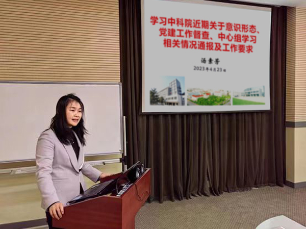 會上,湯素芳首先作了題為“學(xué)習(xí)中科院近期關(guān)于意識形態(tài)、中心組學(xué)習(xí)、黨建工作督查相關(guān)情況通報及工作要求”的主題報告。她指出,要認真對照中科院對相關(guān)工作提出的要求,檢查我所存在的不足,不斷加強和改進我所意識形態(tài)和思想政治工作,充分發(fā)揮中心組學(xué)習(xí)成果對實際工作的指導(dǎo)作用,進一步提升研究所黨的建設(shè)質(zhì)量,為重大科技成果產(chǎn)出提供堅強的政治和組織保障。