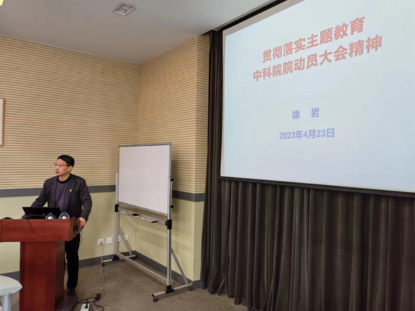 隨后,徐巖作了題為“貫徹落實主題教育中科院動員大會精神”的主題報告。傳達了院主題教育動員大會概況、工作部署情況,帶領(lǐng)大家共同學(xué)習(xí)了院主題教育實施方案,并就制定我所主題教育工作計劃和調(diào)研具體工作方案提出整體思路。他指出,處級以上人員要深入學(xué)習(xí)領(lǐng)會習(xí)近平總書記關(guān)于科技創(chuàng)新的重要論述和對我院的重要指示批示精神,緊密圍繞我院科技創(chuàng)新實際和職責(zé)定位,結(jié)合實現(xiàn)高水平科技自立自強的目標(biāo)要求,重點關(guān)注科技創(chuàng)新、體制機制改革和職工群眾急難愁盼等問題,結(jié)合所黨委前期調(diào)研成果,找準(zhǔn)深入調(diào)查研究的切入點、著力點和落腳點,主動認領(lǐng)、扎實整改,著力解決理論學(xué)習(xí)、政治素質(zhì)、能力本領(lǐng)、擔(dān)當(dāng)作為、工作作風(fēng)、廉潔自律等6個方面的突出問題。